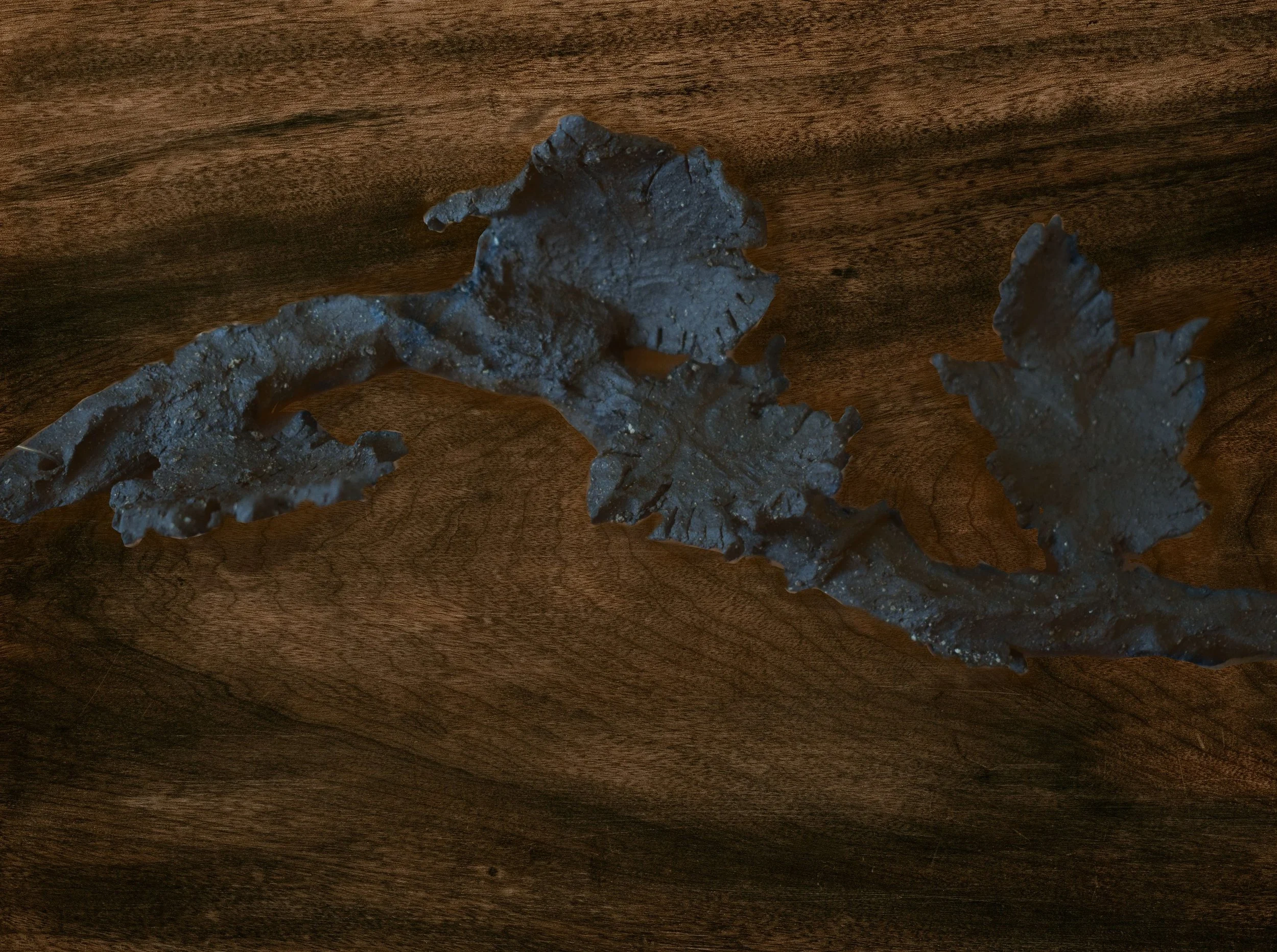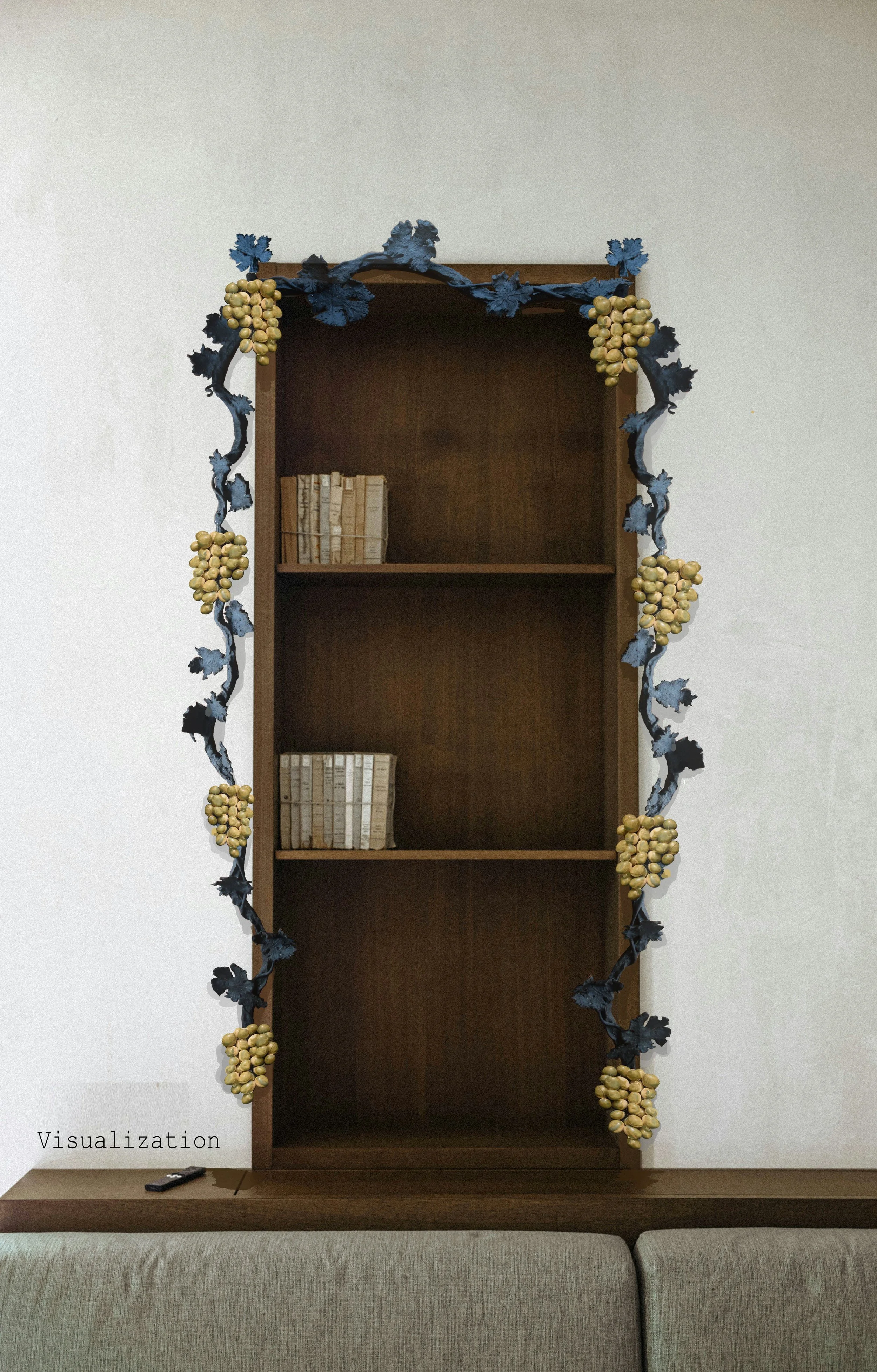 The GRAPEVINE consists of separate ~40 cm (~16 inch) segments linked together with metal rings. This grants the piece some flexibility, allowing it to be set over the edges of bookshelves or bent around doorways, or simply hung on a wall in a straight line.