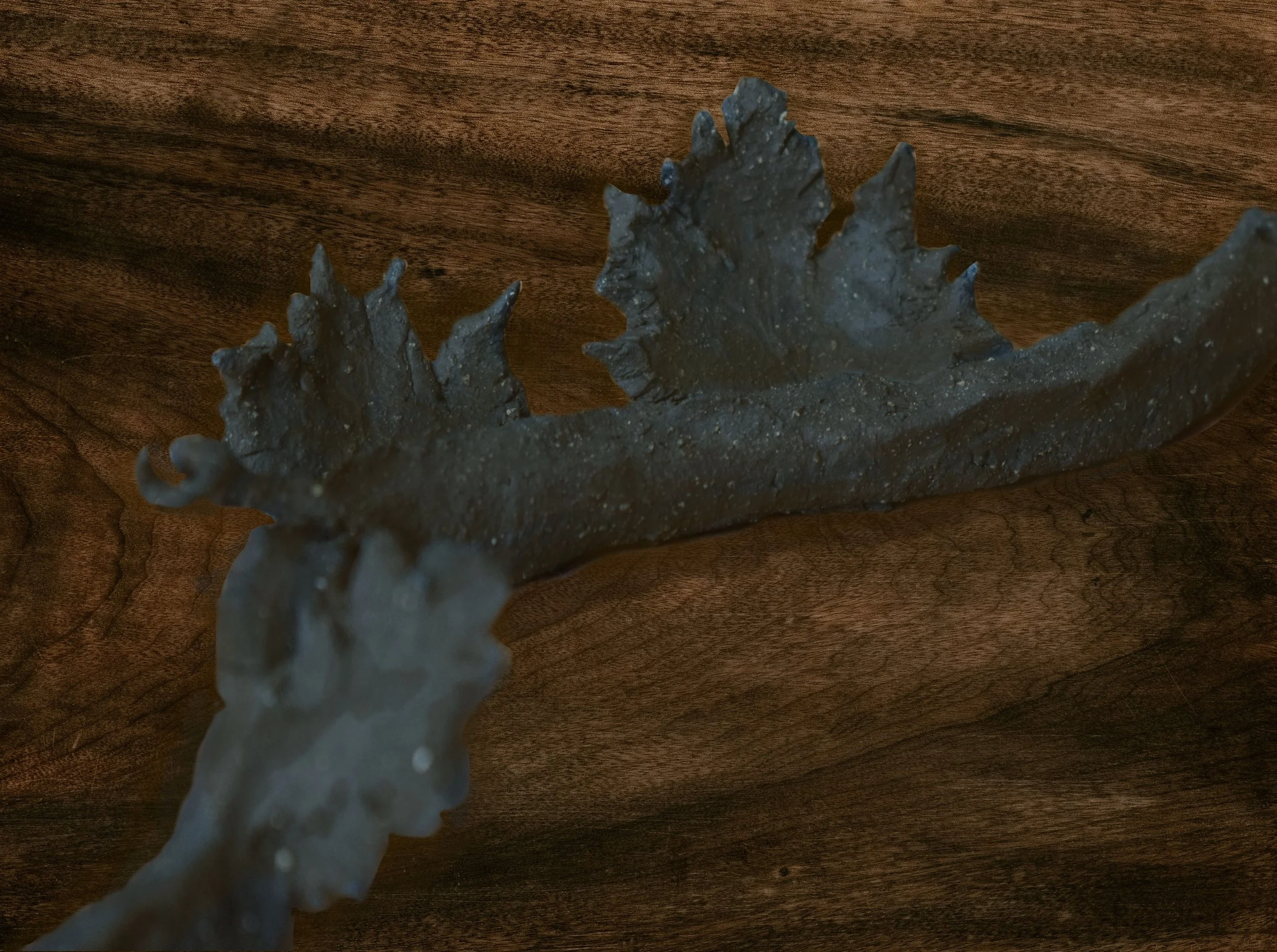 Material: Dark stoneware clay; glaze; metal wire
